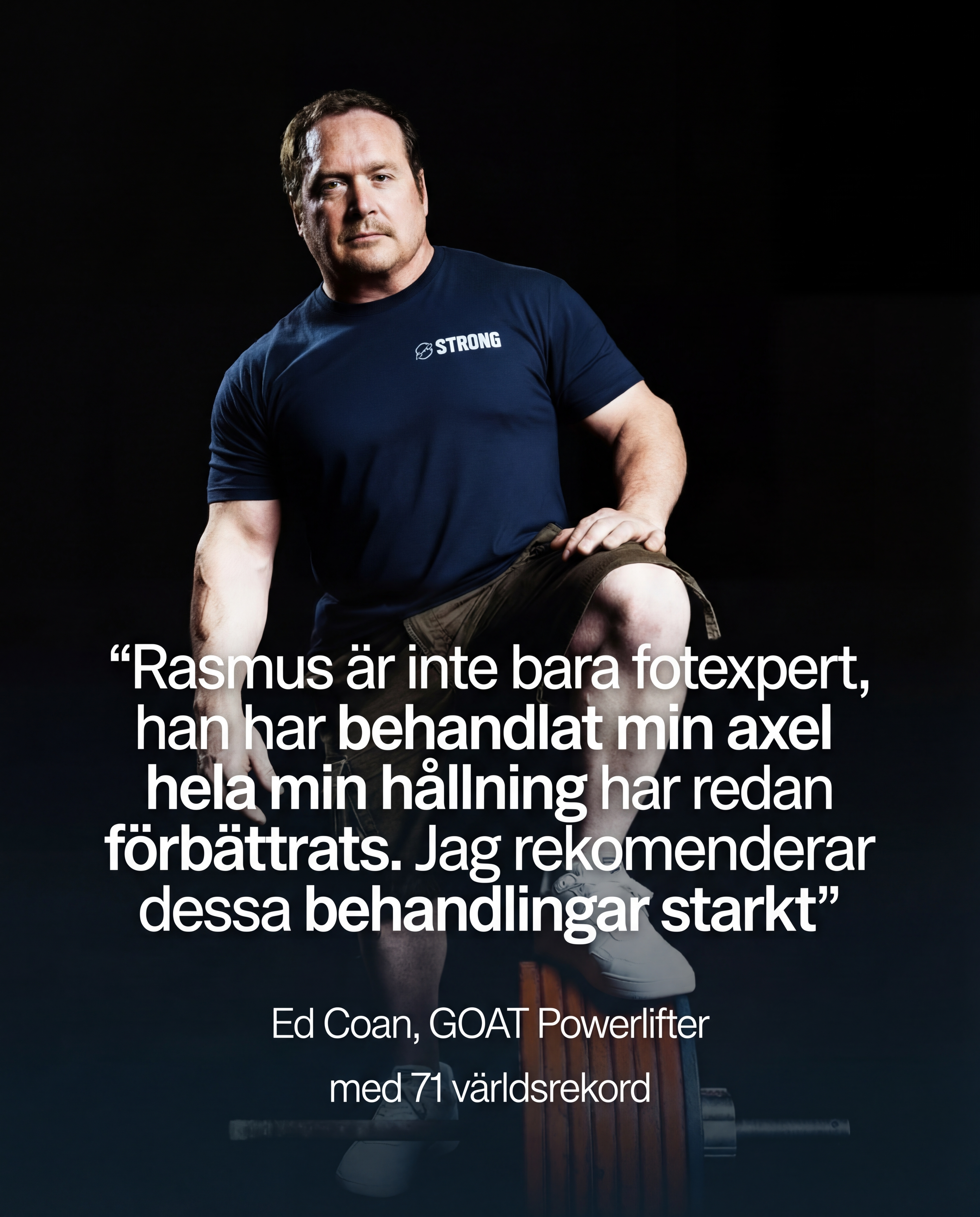 Ed Coan har 7 VM Guld, 71 Världsrekord. När han vägde 100 kg, lyfte han 472,5 kg i knäböj. Han anses vara GOAT, Greatest of all time Powerlifter.