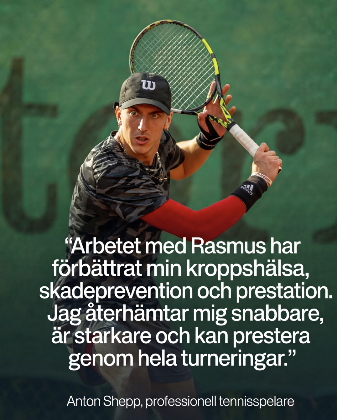 Sedan jag började arbeta med Rasmus har jag sett en tydlig förbättring i min kroppshälsa, skadeprevention och min förmåga att hålla hela vägen genom en turnering. Det har inte bara förbättrat min återhämtning från kvarstående smärtor, utan även ökat min styrka och min totala prestation. Jag är mycket tacksam för den stora kunskap och omsorg som Rasmus besitter och ser fram emot att fortsätta arbeta tillsammans med honom framöver.